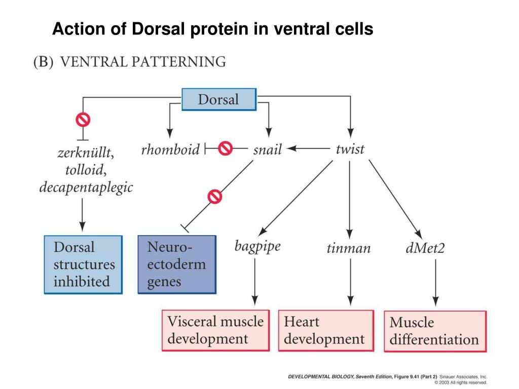 Drosophila axis detemination; dorsal/ventral polarity How does the embryonic dorsal-ventral axis get translated into differentiation of different tissue types?