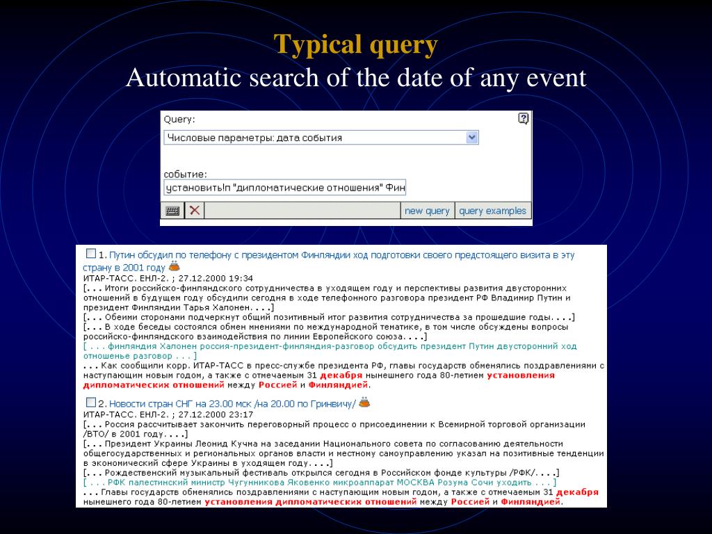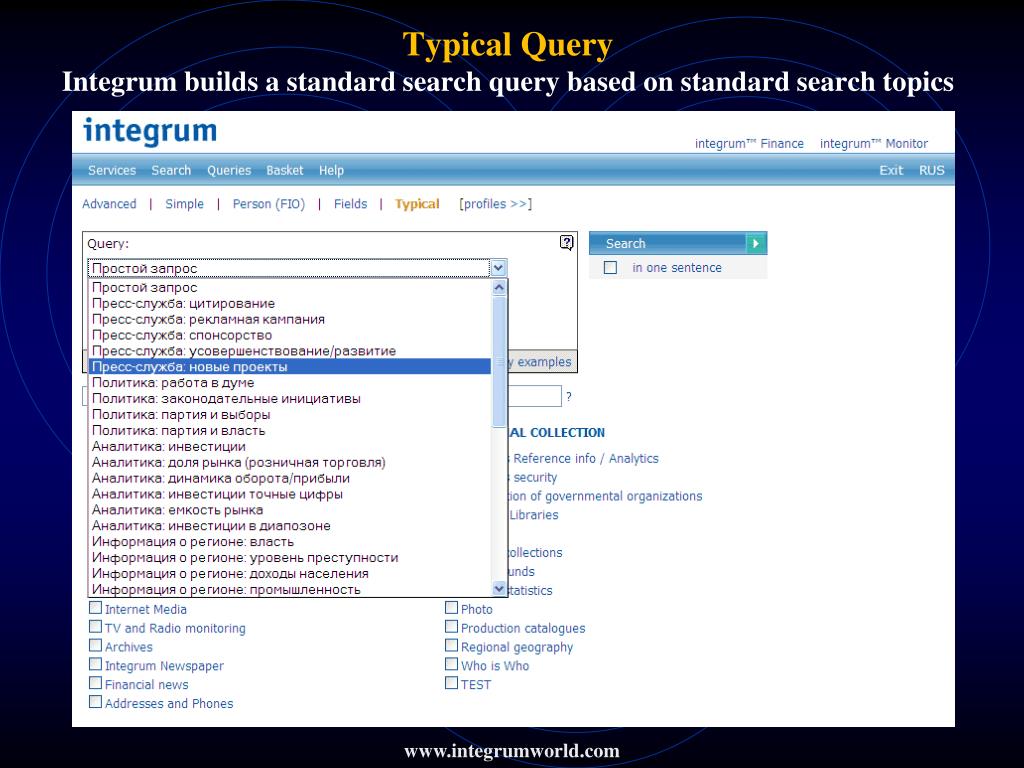 Typical QueryIntegrum builds a standard search query based on standard search topics www.integrumworld.com