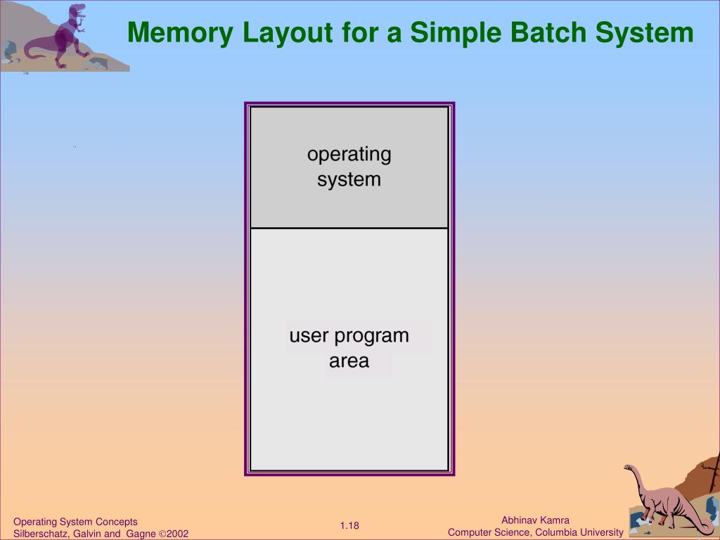 Memory Layout for a Simple Batch System Operating System Concepts Silberschatz, Galvin and Gagne 2002