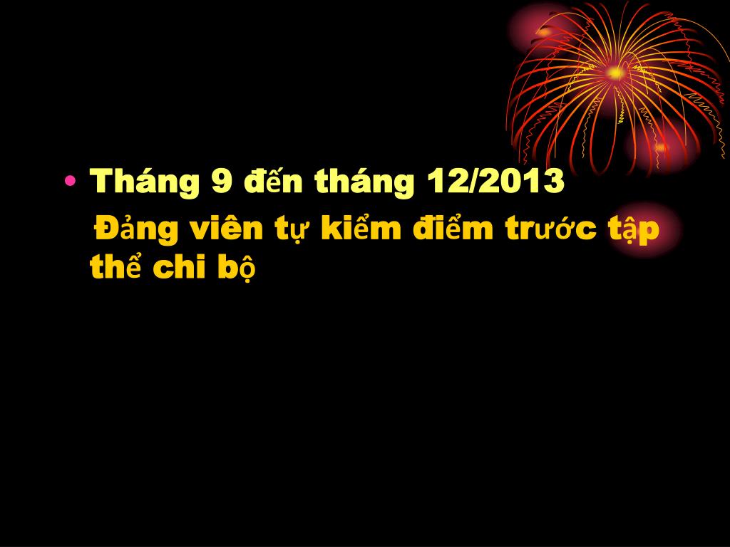 Tháng 9 đến tháng 12/2013 Đảng viên tự kiểm điểm trước tập thể chi bộ
