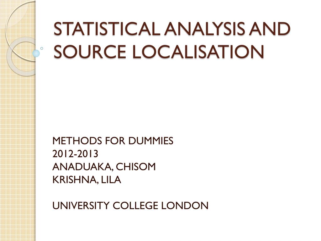 STATISTICAL ANALYSIS AND SOURCE LOCALISATION METHODS FOR DUMMIES 2012-2013 ANADUAKA, CHISOM KRISHNA, LILA UNIVERSITY COLLEGE LONDON
