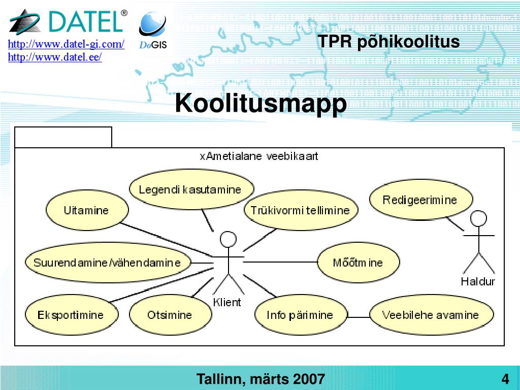 TPR põhikoolitus Koolitusmapp • Tiitellehel teemad tundide kaupa • Asjaajamise korraldus ja mõisted • Registri kasutuslood (mida keegi teha saab) – kasutusloodiagrammid ja kasutuslugude lühikirjeldused