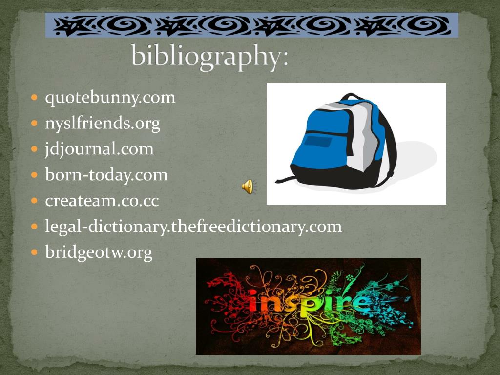 bibliography: • quotebunny.com • nyslfriends.org • jdjournal.com • born-today.com • createam.co.cc • legal-dictionary.thefreedictionary.com • bridgeotw.org