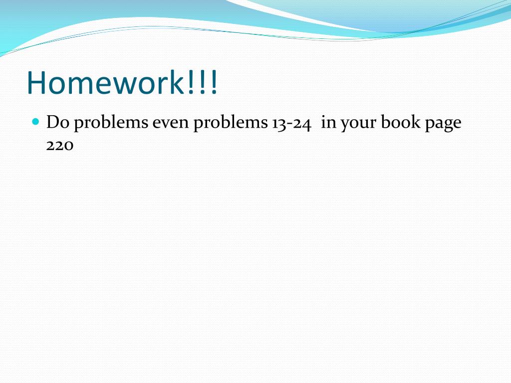 Homework!!! • Do problems even problems 13-24 in your book page 220