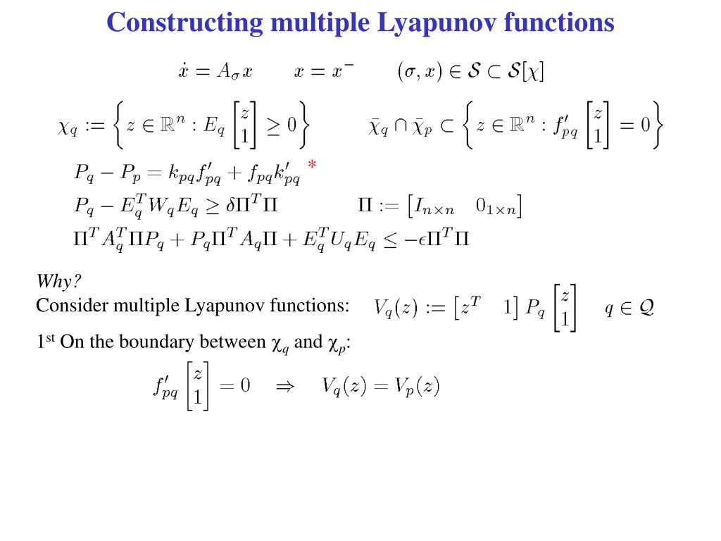 Constructing multiple Lyapunov functions * Why? Consider multiple Lyapunov functions 3rd On cq:
