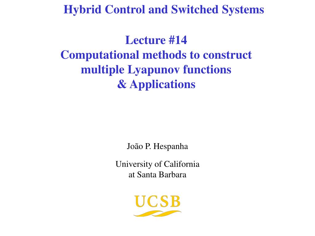 Hybrid Control and Switched Systems Lecture #14Computational methods to constructmultiple Lyapunov functions& Applications João P. Hespanha University of Californiaat Santa Barbara