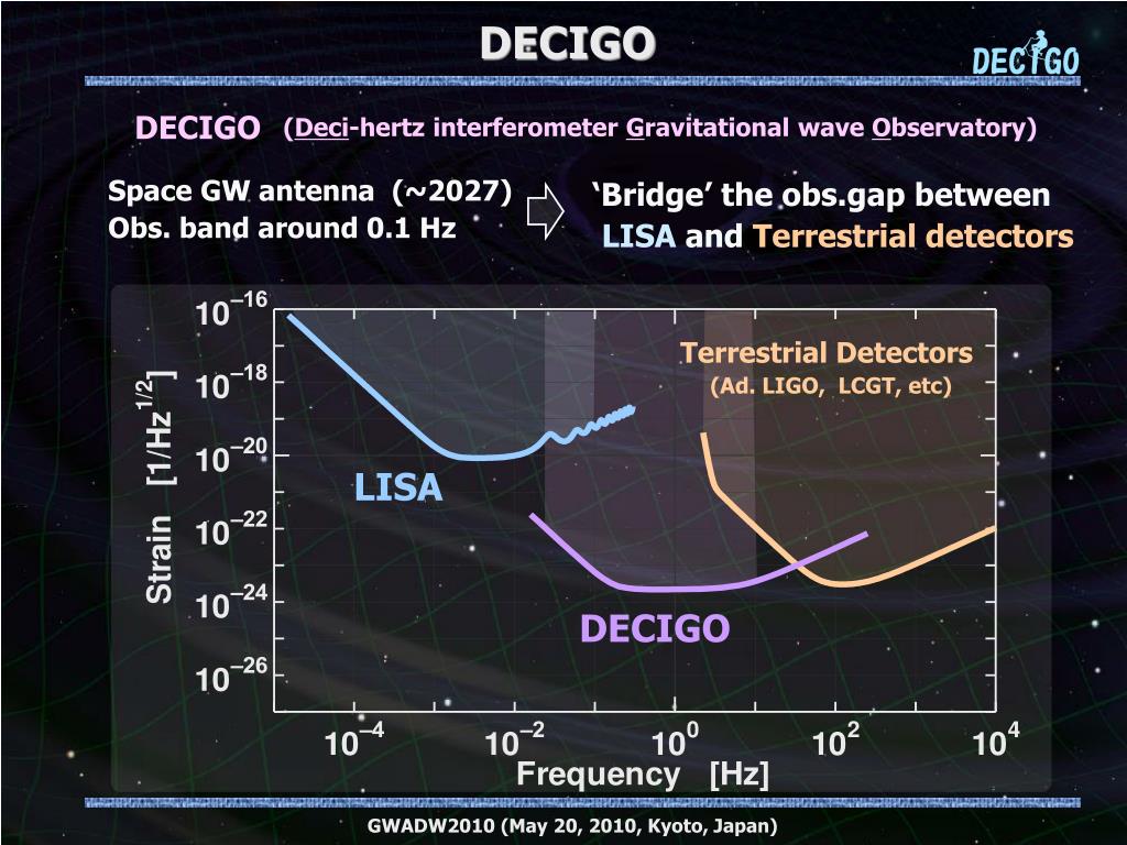 Space Gravitational-Wave Antenna DECIGO . Original Picture : Sora. Masaki Ando (Department of Physics , Kyoto University). Wataru Kokuyama (Department of Physics , University of Tokyo). On behalf of DECIGO working group. 1. DECIGO Overview and Science