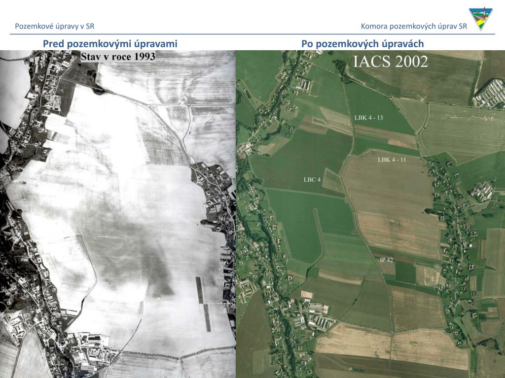 Pozemkové úpravy v SR Komora pozemkových úprav SR Pred pozemkovými úpravami Po pozemkových úpravách
