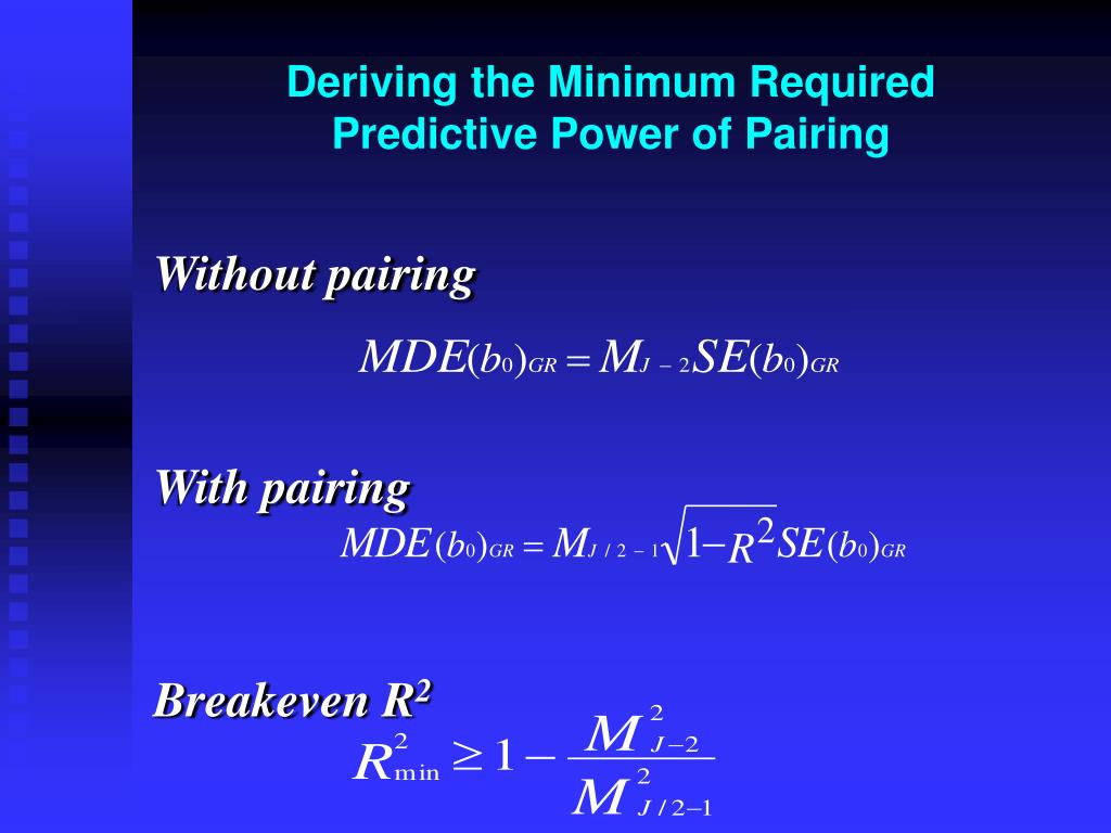 Deriving the Minimum Required Predictive Power of Pairing Without pairing With pairing Breakeven R2