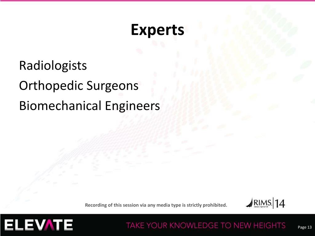 Experts • Radiologists • Orthopedic Surgeons • Biomechanical Engineers