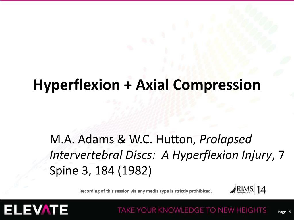 Hyperflexion + Axial Compression • M.A. Adams & W.C. Hutton, Prolapsed Intervertebral Discs: A Hyperflexion Injury, 7 Spine 3, 184 (1982)