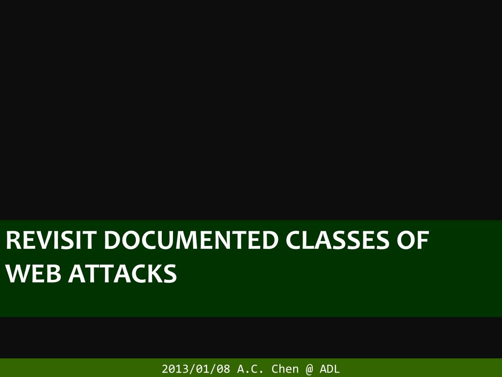 revisit documented classes ofWeb attacks 2013/01/08 A.C. Chen @ ADL