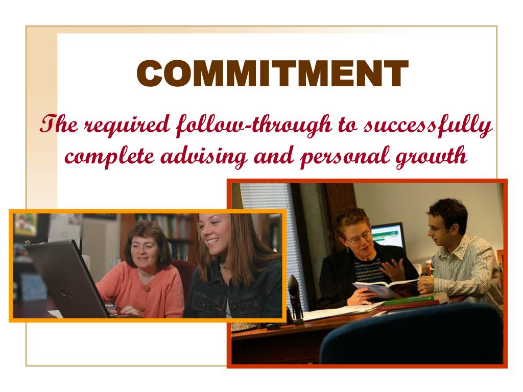 COMMITMENT The required follow-through to successfully complete advising and personal growth