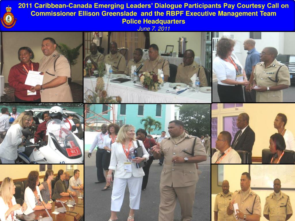 2011 Caribbean-Canada Emerging Leaders’ Dialogue Participants Pay Courtesy Call on Commissioner Ellison Greenslade and the RBPF Executive Management Team Police Headquarters June 7, 2011