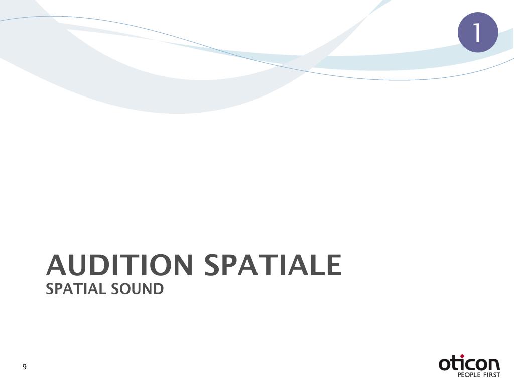 Spatial Sound améliore les performances auditives 1 Sans AA Une (monaural) Deux (bilatéral) Spatial Sound (Traitement binaural) SITUATION Deux aides auditives avec Spatial Sound Pas d’aide auditive Une aide auditive Deux aides auditives CALME Parler avec une personne dans le calme Localiser le locuteur autour d’une table Ignorer les sons gênants GROUPE Ignore les voix gênantes Sons à l’endroit attendu Localiser les voitures depuis le trottoir A L’EXTERIEUR Estimer la distance(voix ou bruits de pas) CAPACITE AUDITIVE