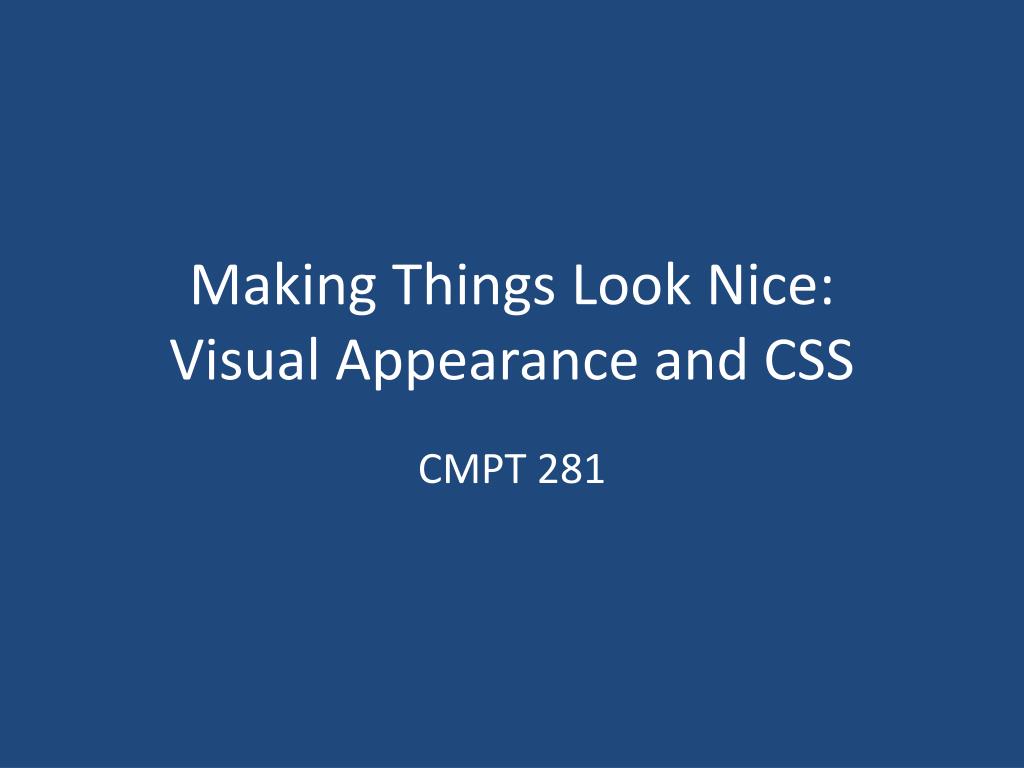 Separation of content and appearance • HTML originally had little support for control over a page’s appearance • then came HTML 3.2: <font> and <color> attributes • BUT: • HTML markup is meant to specify content • How to control appearance? • Styles • Introduced in HTML 4.0