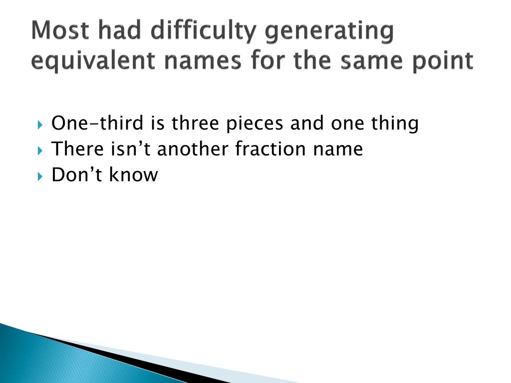 Most had difficulty generating equivalent names for the same point • One-third is three pieces and one thing • There isn’t another fraction name • Don’t know