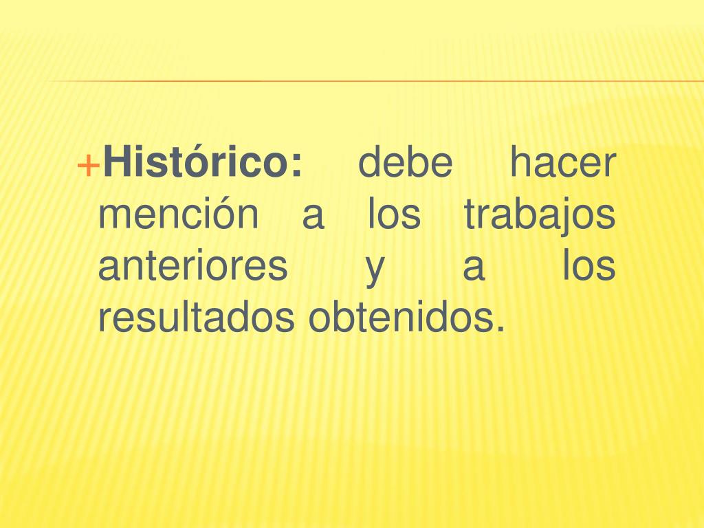 Histórico: debe hacer mención a los trabajos anteriores y a los resultados obtenidos.