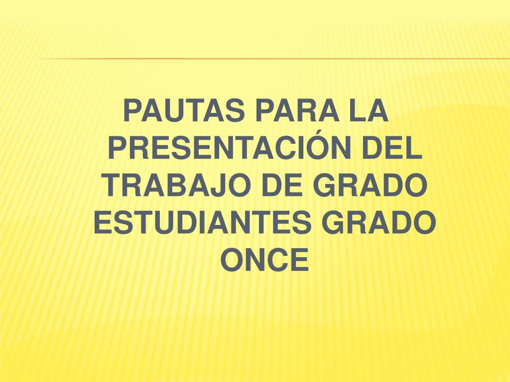 PAUTAS PARA LA PRESENTACIÓN DEL TRABAJO DE GRADO ESTUDIANTES GRADO ONCE
