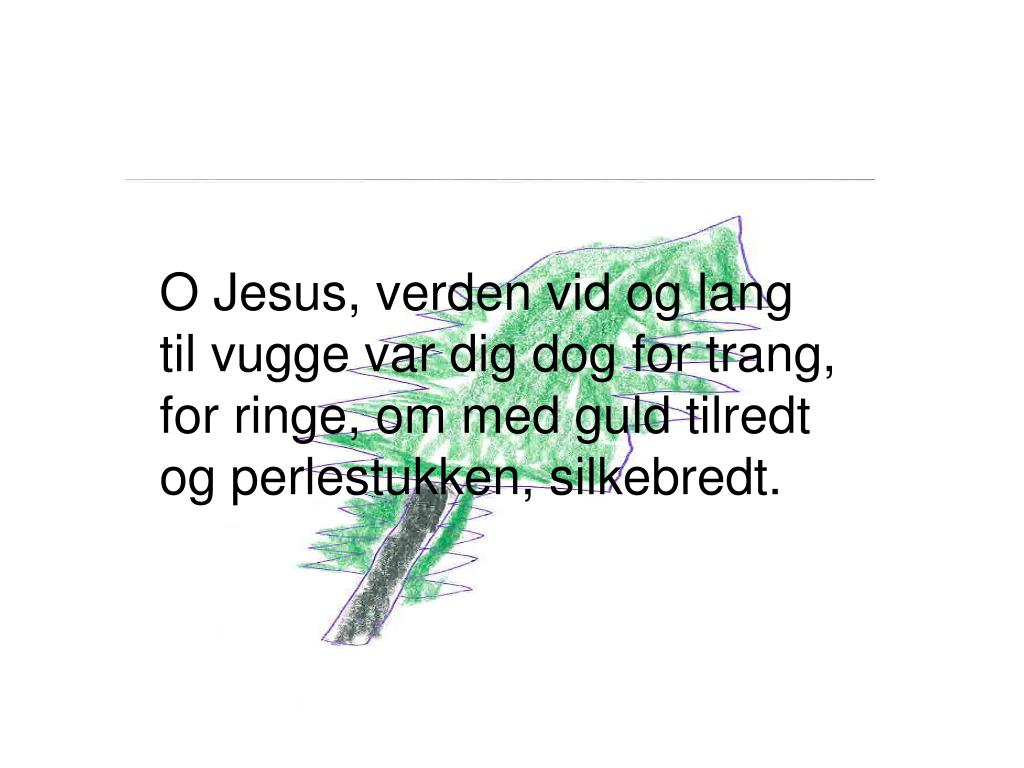 O Jesus, verden vid og langtil vugge var dig dog for trang,for ringe, om med guld tilredtog perlestukken, silkebredt.