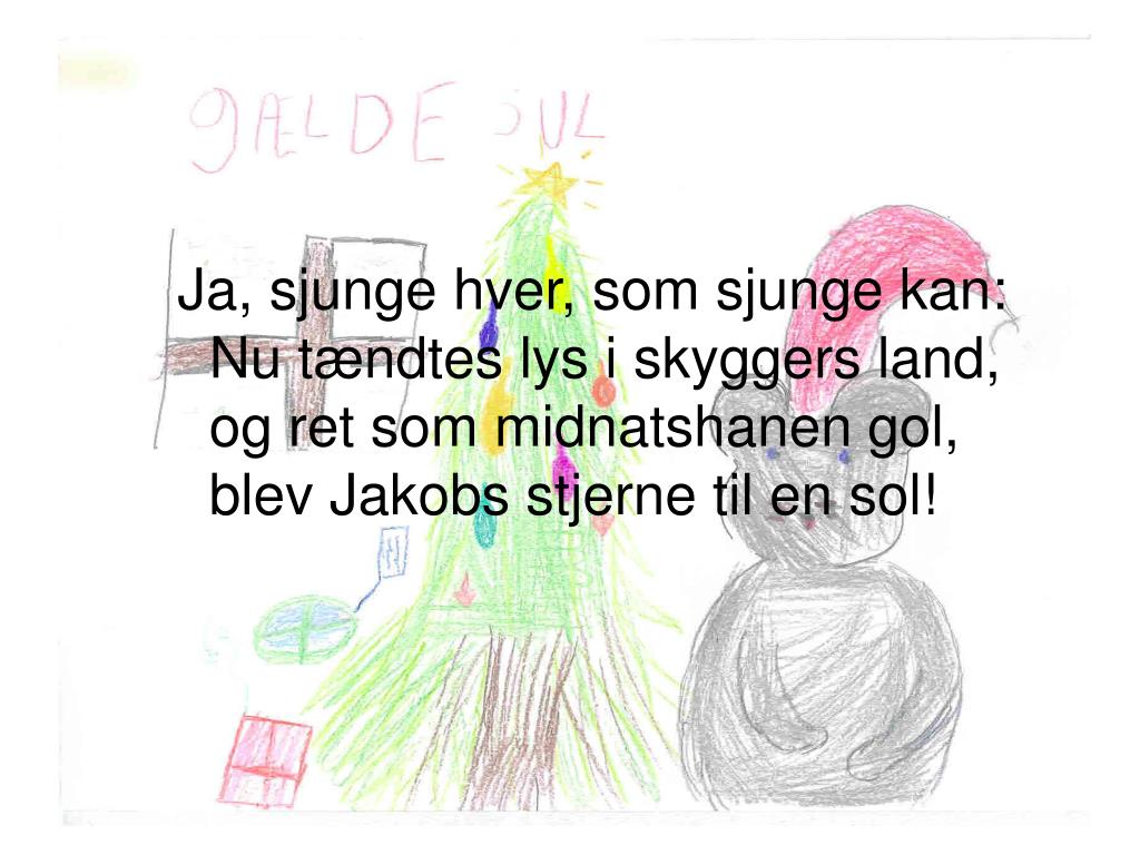 Ja, sjunge hver, som sjunge kan: Nu tændtes lys i skyggers land, og ret som midnatshanen gol, blev Jakobs stjerne til en sol!