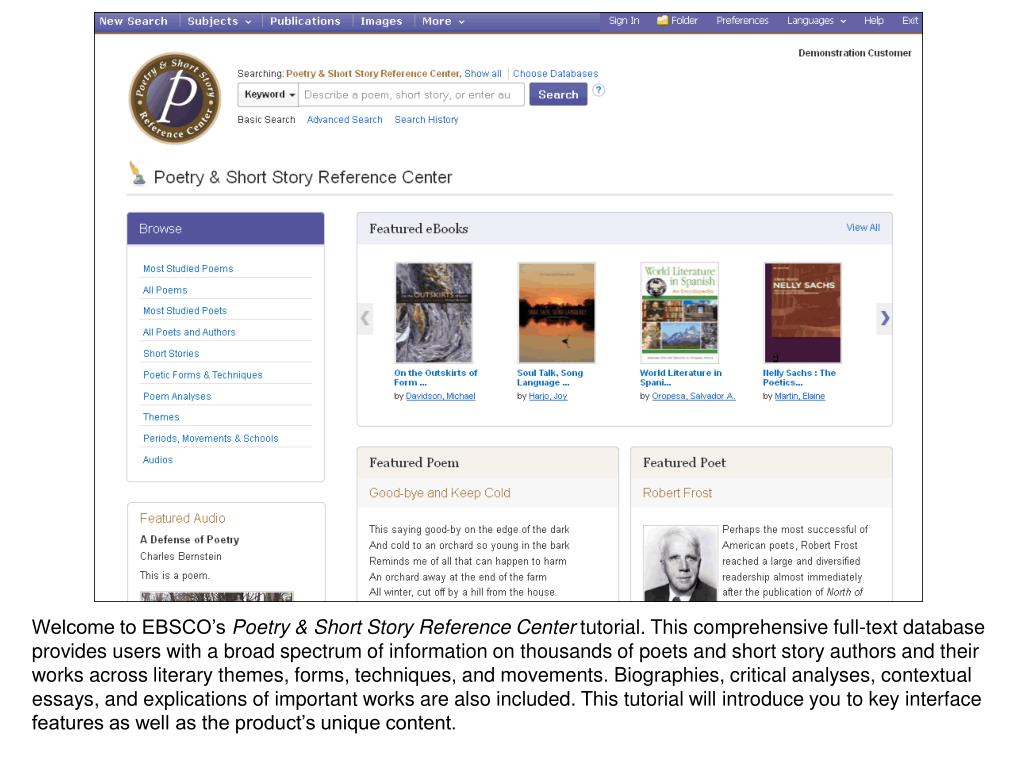 Tutorial. Poetry & Short Story Reference Center. support.ebsco.com.