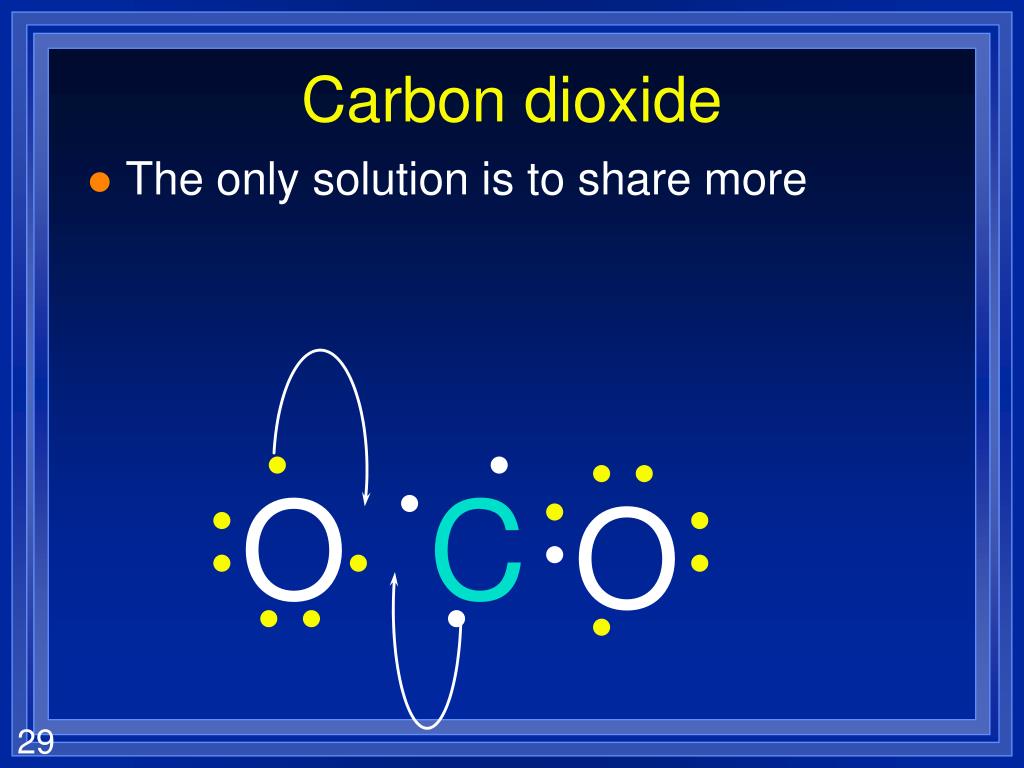 O Carbon dioxide • Attaching 1 oxygen leaves the oxygen 1 short and the carbon 3 short C