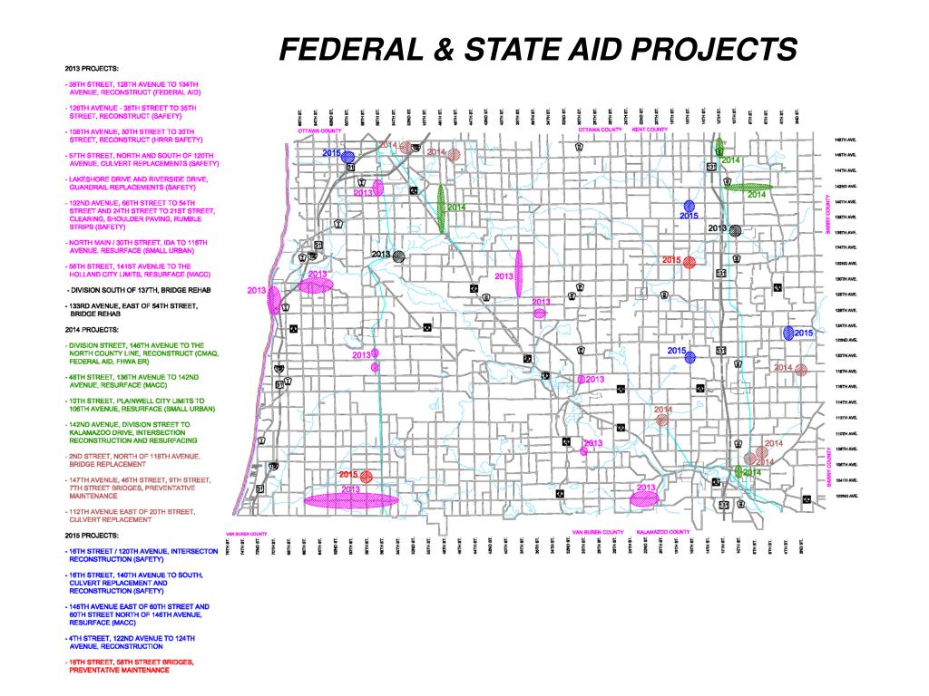 ALLEGAN COUNTY PRIMARY ROAD MILLAGE AREA 2. JANUARY 21, 2014. PRESENTATION TOPICS. ALLEGAN COUNTY ROAD COMMISSION INFORMATION MILLAGE HISTORY & GUIDELINES FEDERAL AID PROJECTS 2013 PROJECTS & FINANCIAL INFORMATION 2014 PROPOSED PROJECTS DISCUSSION. ALLEGAN COUNTY ROADS & BRIDGES.