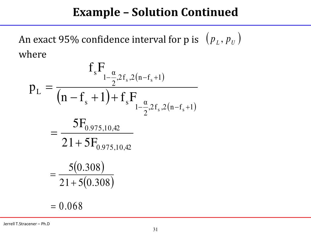 Example – Solution Continued An exact 95% confidence interval for p is where