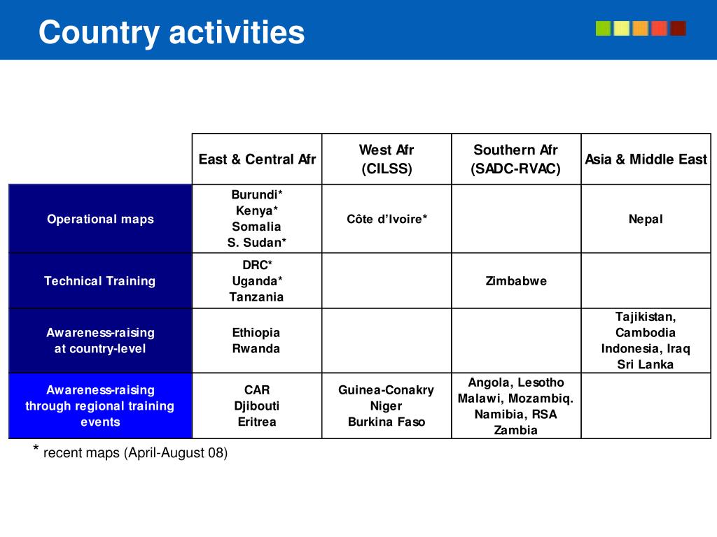 Outline • Update on activities • Overview • Global Activities • Regional and national activities II. Some key Lessons Learnt