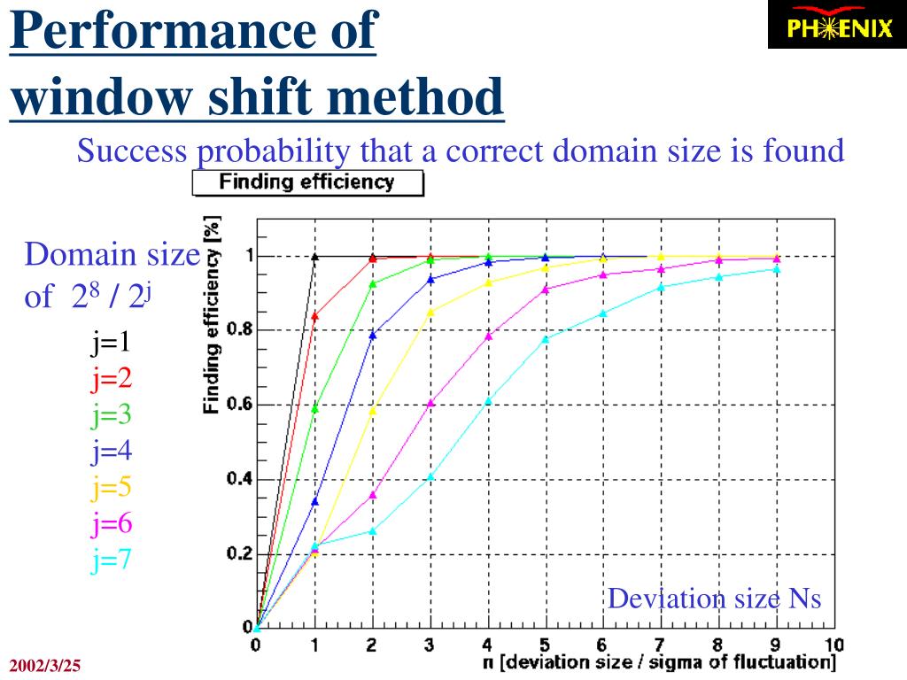 Performance of window shift method Success probability that a correct domain size is found Domain size of 28 / 2j j=1 j=2 j=3 j=4 j=5 j=6 j=7 Deviation size Ns Tomoaki Nakamura Hiroshima Univ.