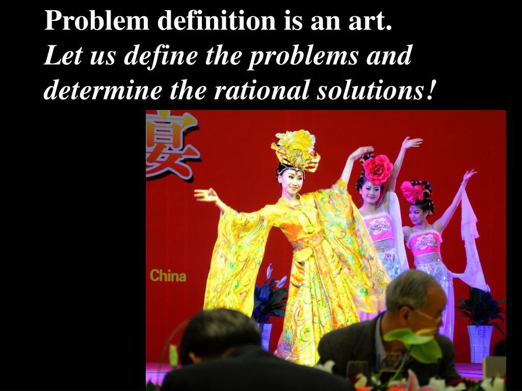 Problem definition is an art.Let us define the problems and determine the rational solutions!