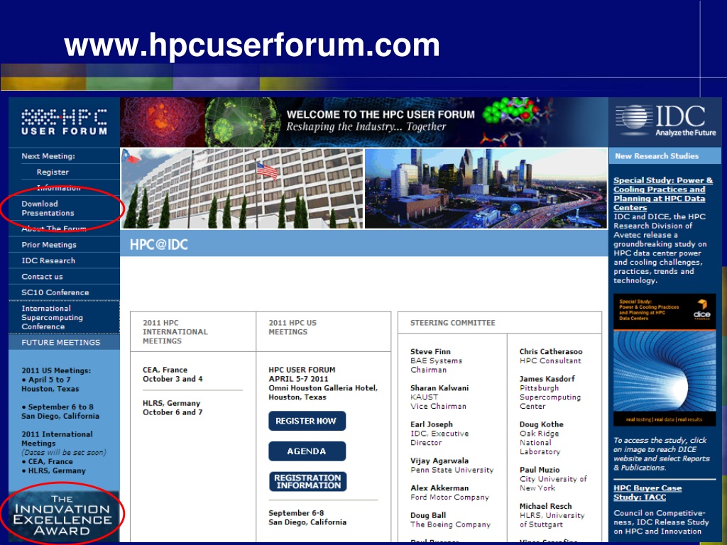 New HPC Innovation Award Program:www.hpcuserforum.com/innovationaward/