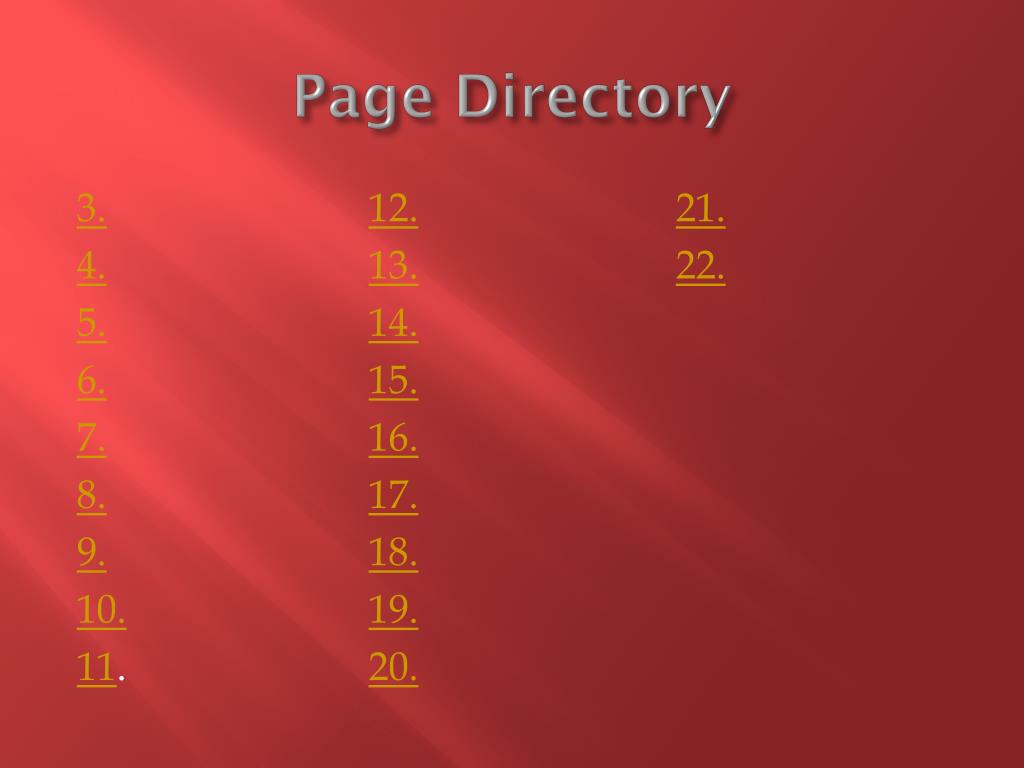 Page Directory 3.12.21. 4.13.22. 5.14. 6.15. 7.16. 8.17. 9.18. 10.19. 11. 20.