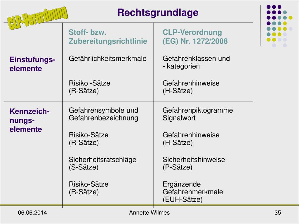 CLP – Verordnung und Gefährdungsbeurteilung Annette Wilmes