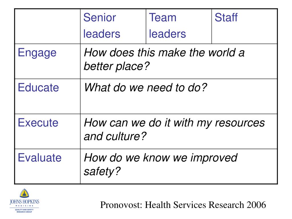 Patient Safety Leadership. Peter Pronovost MD PhD Professor, Schools of Medicine and Public Health Director, JHU Quality & Safety Research Group. Leading Change: Universal Challenge of Technical and Adaptive Work. Technical Challenges. Can be solved with existing science or technology