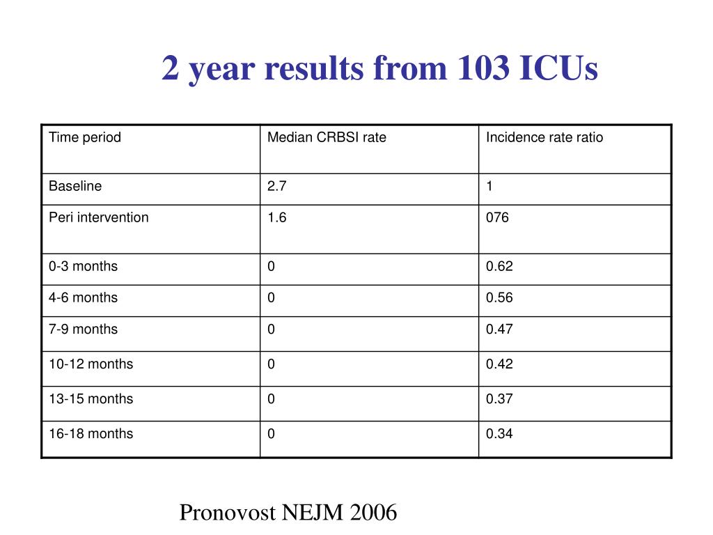 2 year results from 103 ICUs Pronovost NEJM 2006