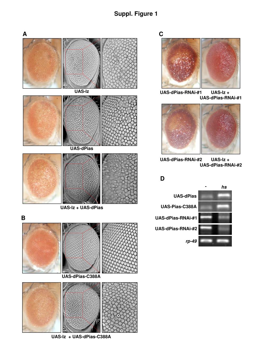 Suppl. Figure 1 A C UAS-lz UAS-dPias-RNAi-#1 UAS-lz + UAS-dPias-RNAi-#1 UAS-dPias UAS-dPias-RNAi-#2 UAS-lz + UAS-dPias-RNAi-#2 D - hs UAS-dPias UAS-Pias-C388A UAS-lz + UAS-dPias B UAS-dPias-RNAi-#1 UAS-dPias-RNAi-#2 rp-49 UAS-dPias-C388A UAS-lz + UAS-dPias-C388A