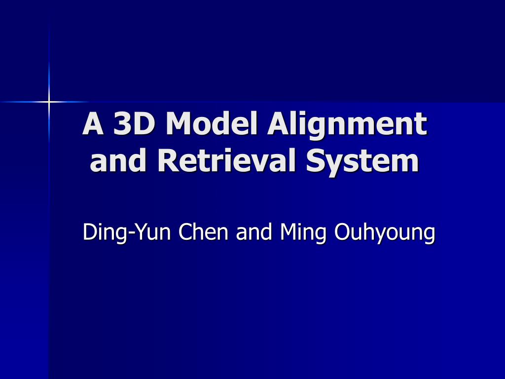 A 3D Model Alignment and Retrieval System. Ding-Yun Chen and Ming Ouhyoung. Introduction. The basic concept of our approach is that when two 3D models are similar, they will also look similar from their corresponding viewing angles.