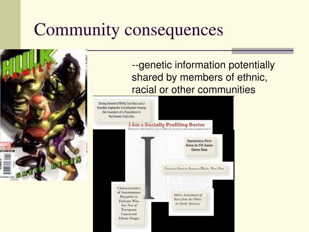 Community consequences --genetic information potentially shared by members of ethnic, racial or other communities