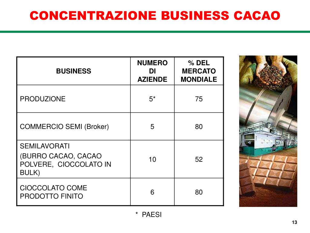 CONCENTRAZIONE BUSINESS CACAO * PAESI 13