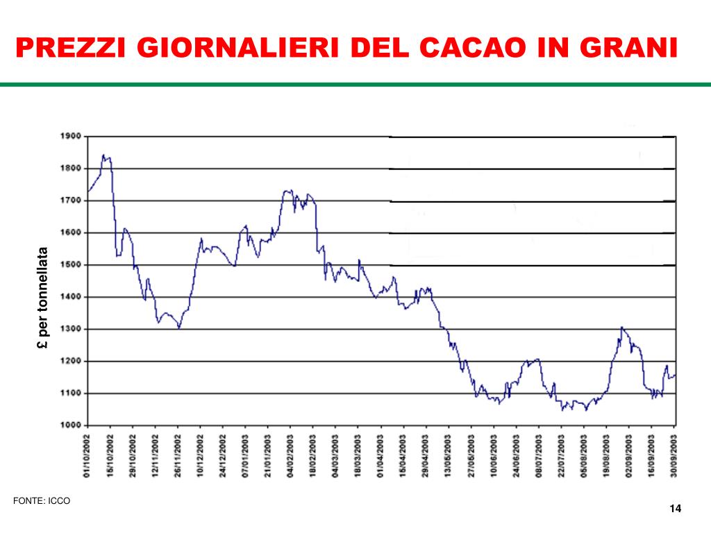 £ per tonnellata PREZZI GIORNALIERI DEL CACAO IN GRANI 14 FONTE: ICCO