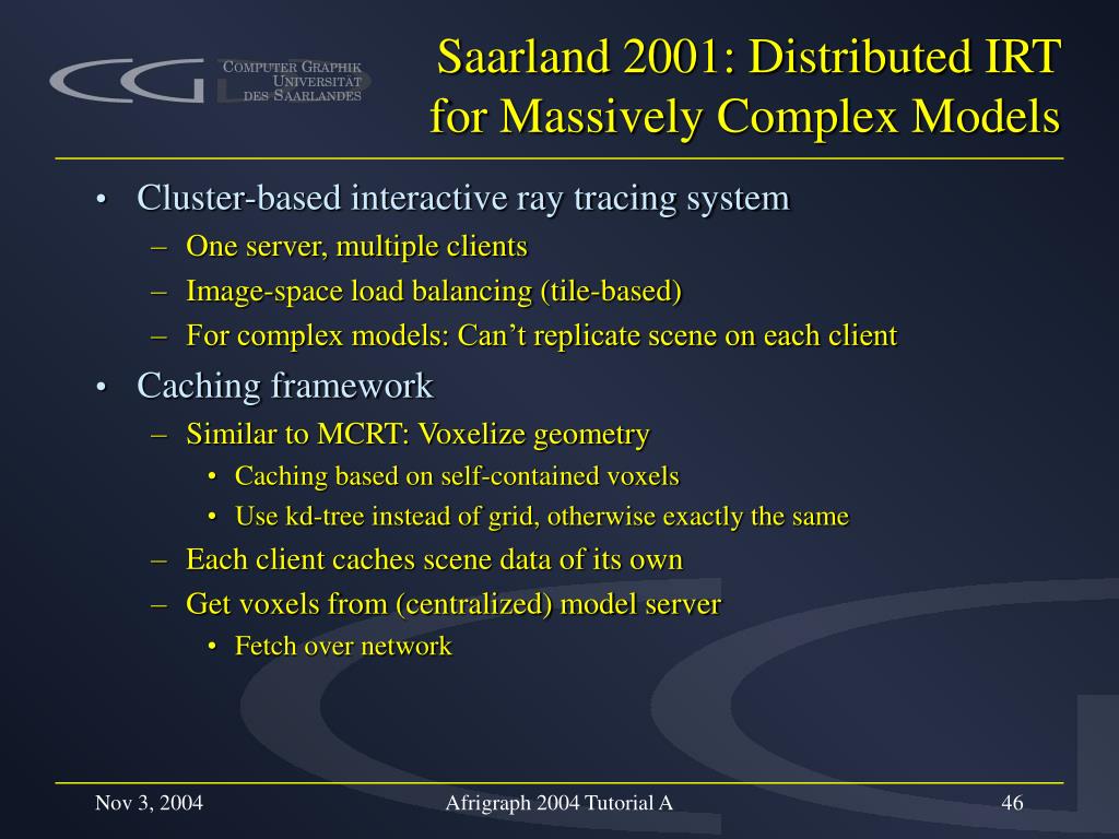 Saarland 2001: Distributed IRT for Massively Complex Models Afrigraph 2004 Tutorial A