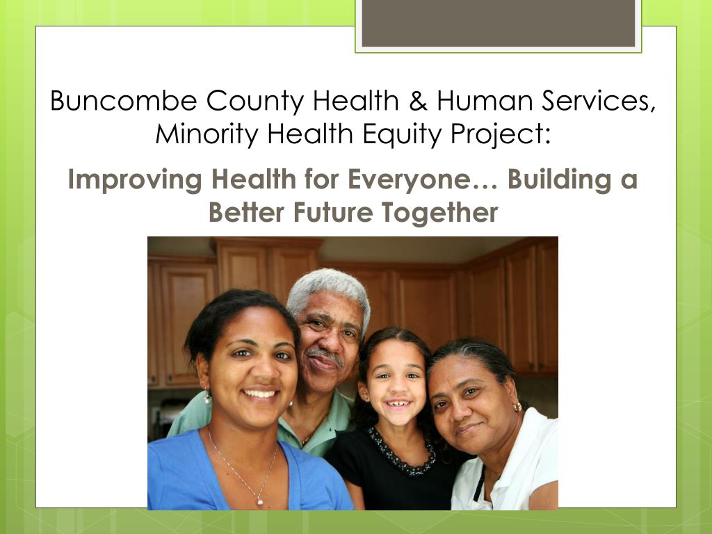 Buncombe County Health & Human Services, Minority Health Equity Project: Improving Health for Everyone… Building a Better Future Together