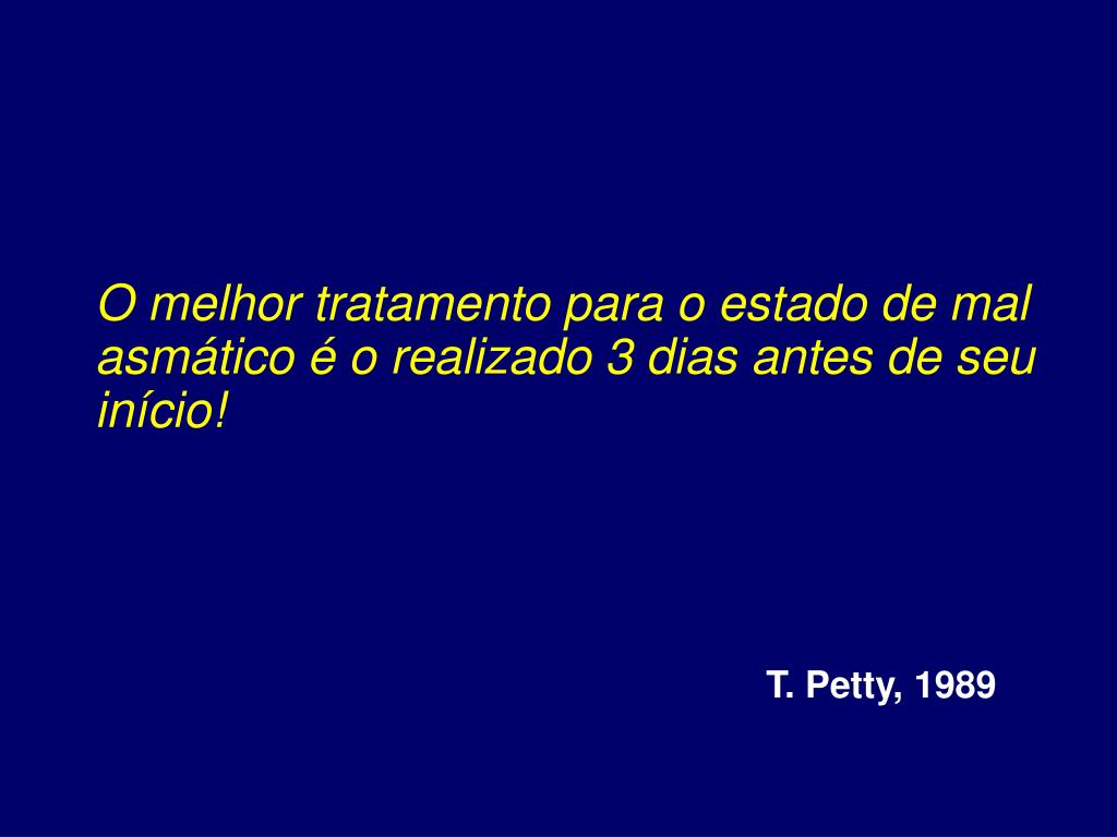 O melhor tratamento para o estado de mal asmático é o realizado 3 dias antes de seu início! T. Petty, 1989