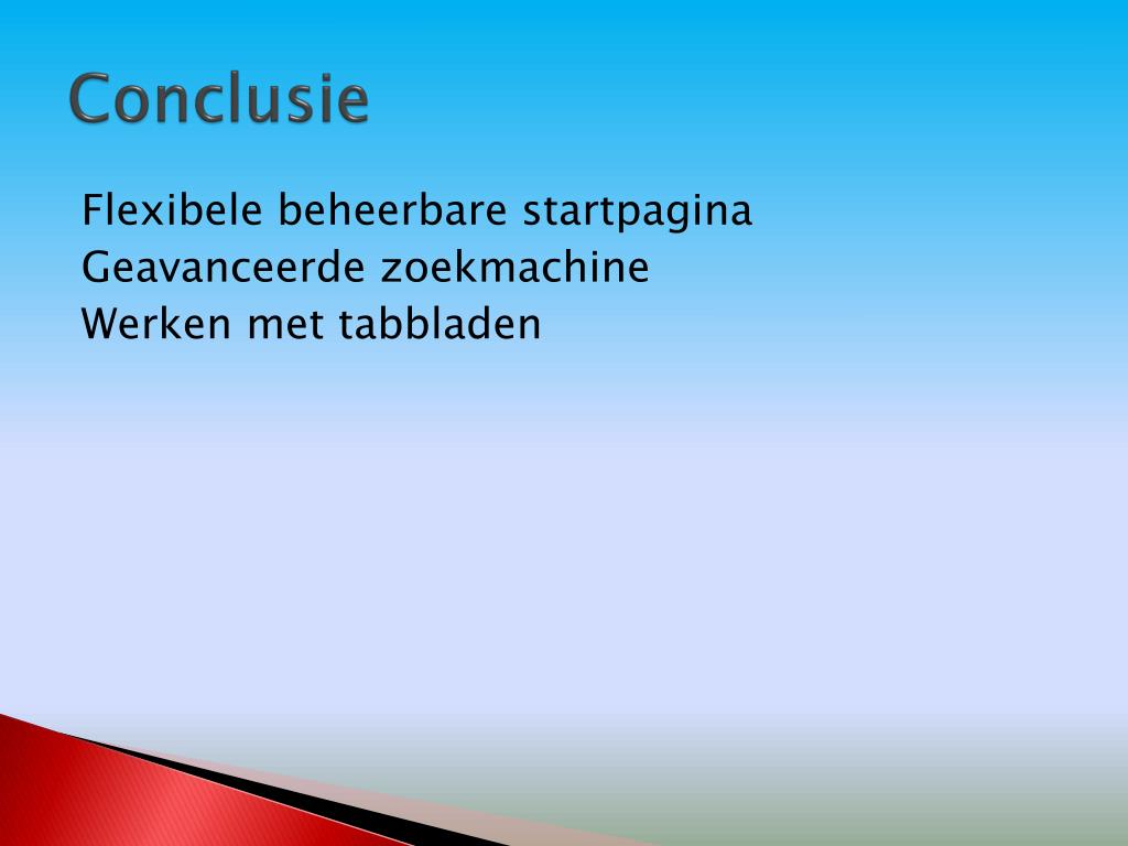 Conclusie Flexibele beheerbare startpagina Geavanceerde zoekmachine Werken met tabbladen