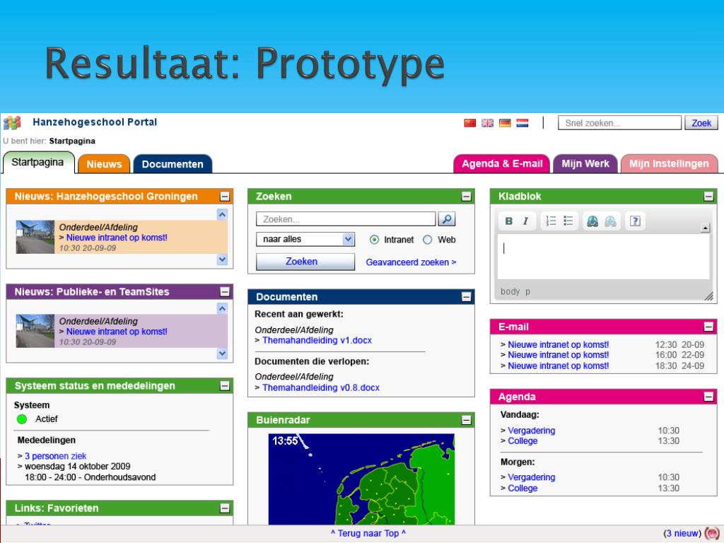 Resultaat: Blok: Overig RSS feeds Digitaleklok Buienradar Favoriete links Kladblok Lay-out E-mail Functionaliteit Agenda