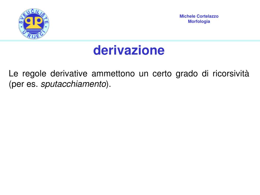 derivazione Le regole derivative ammettono un certo grado di ricorsività (per es. sputacchiamento).