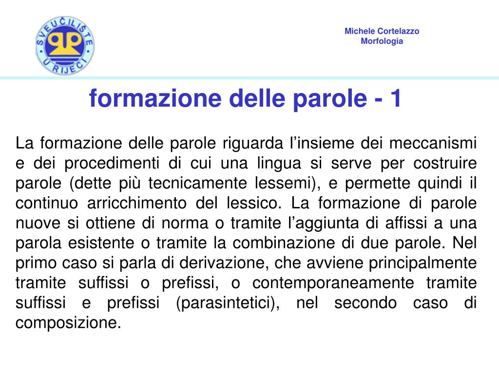 Michele A. Cortelazzo Morfologia. formazione delle parole - 1