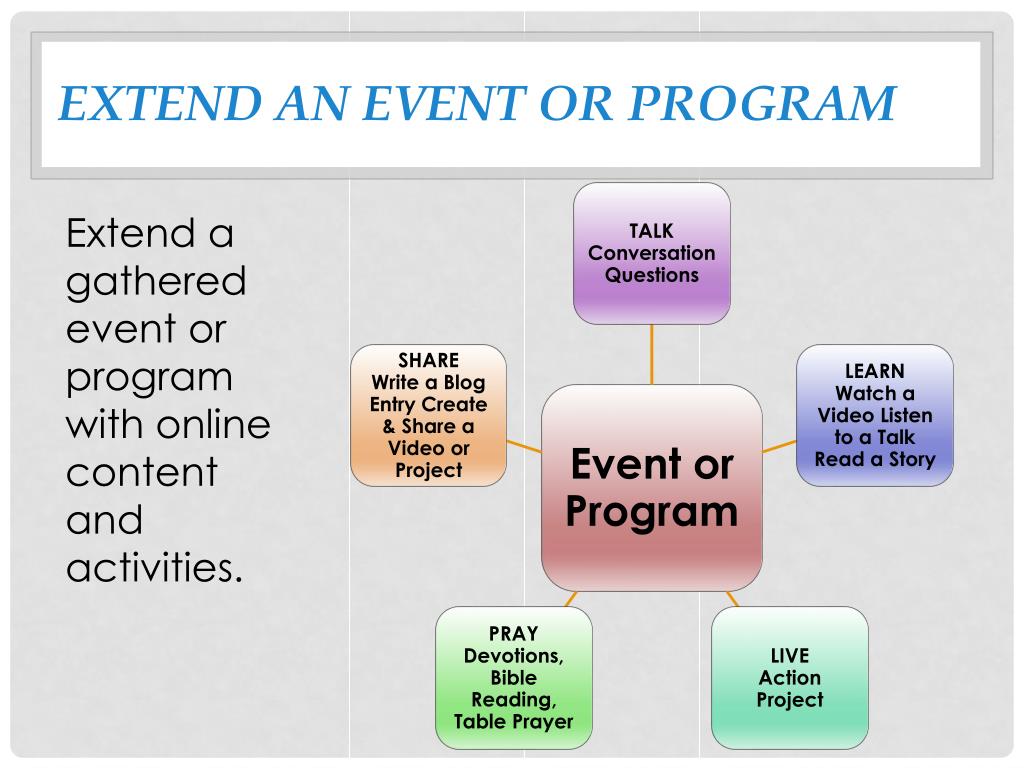 Extend an Event or Program Extend a gathered event or program with online content and activities.